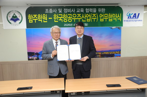 KAI는 학교법인 함주학원과 조종사 및 정비사 교육 협력을 위한 업무협력 합의서(MOA)를 체결했다고 13일 밝혔다.