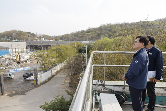 진교훈 서울 강서구청장이 13일(월) 주민 숙원사업인 ‘방화동 건설폐기물처리장(이하 건폐장) 이전 사업’ 현장을 찾아 진행상황을 점검했다.