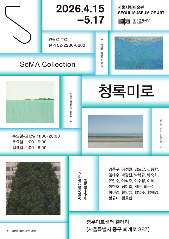 서울시립미술관(관장 최은주)은 중구문화재단과 협력하여 《SeMA Collection: 청록미로》를 2026년 4월 15일(수)부터 5월 17일(일)까지 충무아트센터 갤러리에서 개최한다.