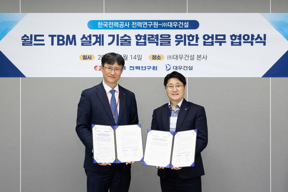 대우건설이 14일 서울 을지로 본사에서 한국전력과 ‘TBM(Tunnel Boring Machine) 설계기술 고도화’를 위한 업무협약(MOU)을 맺었다.