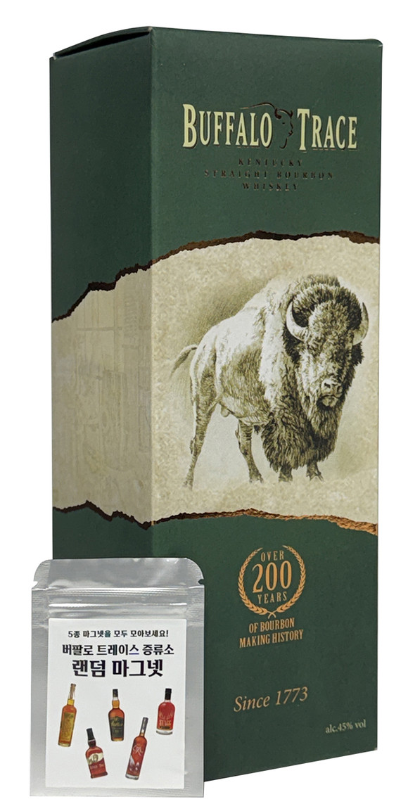 버팔로 트레이스 750㎖ 한 병과 증류소를 대표하는 다섯 가지 브랜드의 마그넷 중 하나가 랜덤으로 포함돼 있다. 순차적으로 전국 이마트와 롯데마트, 주류 소매점에서 한정수량 판매한다.